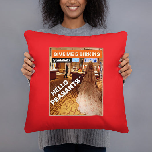 "Give me 5 Birkins!" Designer HELLO PEASANTS ™ Pillow by @radakatz